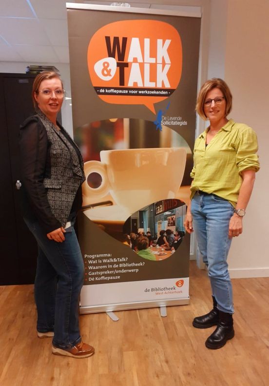 Gastspreker bij Walk & Talk De Walk & Talk is een maandelijks netwerkmoment die wordt georganiseerd door de Bibliotheek Doetinchem, voor mensen die op zoek zijn naar een (andere) baan. Het is een soort informele koffiepauze waar deelnemers elkaar kunnen ontmoeten en tips van elkaar kunnen krijgen en van een gastspreker. Walk staat voor beweging en Talk betekent in gesprek gaan met elkaar in de zoektocht naar werk.